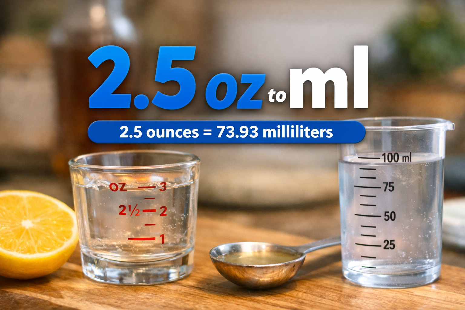 The 2.5 oz measurement shows up more often than you might expect. In the kitchen, it can represent a small amount of liquid like lemon juice, oil, or milk added to a sauce or dressing. In beverages, 2.5 oz is close to a small serving of juice or syrup used in mocktails or cocktails.